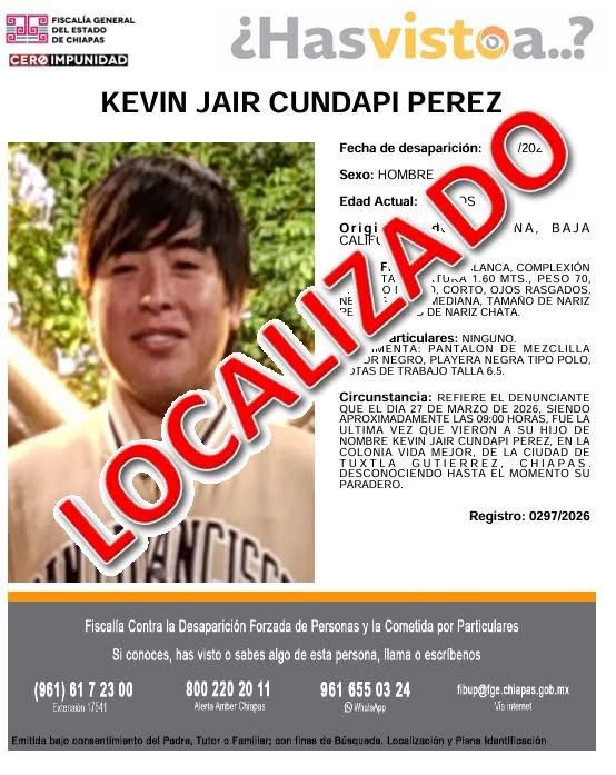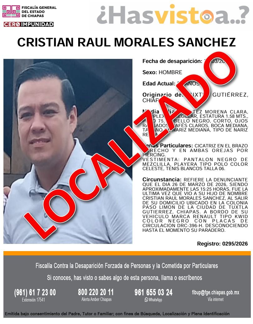 Mientras que en el caso de Cristian “N”, Llaven Abarca precisó que el vehículo fue ubicado en la colonia Plan de Ayala, y en un video se pudo observar que abordó otro vehículo de manera voluntaria. Apuntó que Cristian “N” aún no presenta su declaración ministerial, pero se espera que pronto lo haga para esclarecer el hecho.