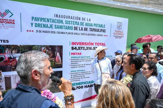 El gobernador Eduardo Ramírez Aguilar acompañó al alcalde de Tuxtla Gutiérrez, Angel Torres Culebro, a la inauguración de la pavimentación y el mejoramiento integral del sistema de agua potable y drenaje sanitario de la Avenida Tamaulipas, en la colonia Plan de Ayala, donde reafirmó el compromiso del gobierno de la Nueva ERA de trabajar en unidad para impulsar la prosperidad de la capital chiapaneca.