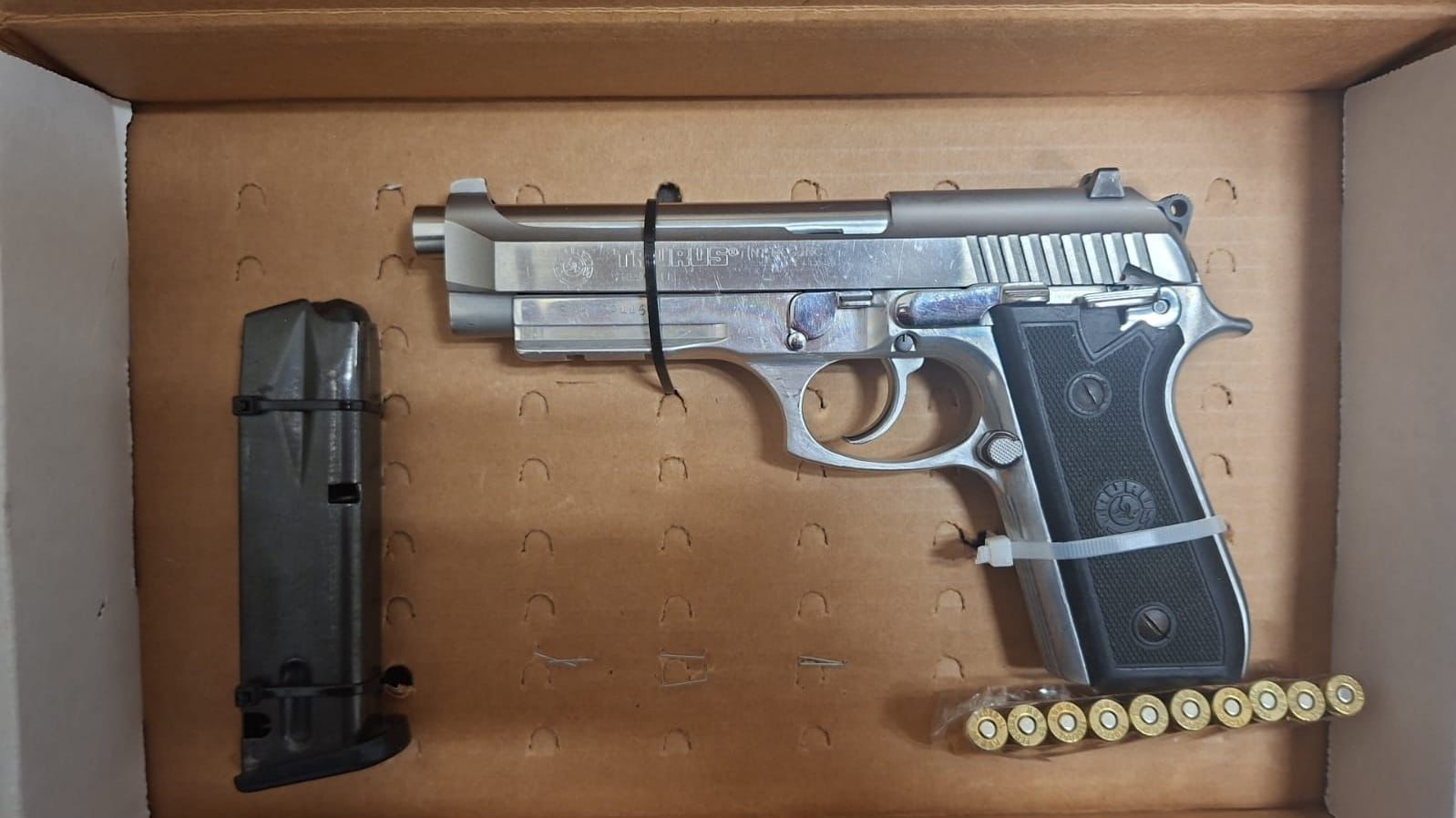 Los indiciados fueron detenidos en flagrancia, asegurándoles un arma de fuego tipo pistola calibre .40 mm, con un cargador y 19 cartuchos útiles calibre .40 mm; dos teléfonos celulares; una venda elástica; un candado de mano, y un vehículo marca Honda tipo CR-V, con placas de circulación del estado de Chiapas.