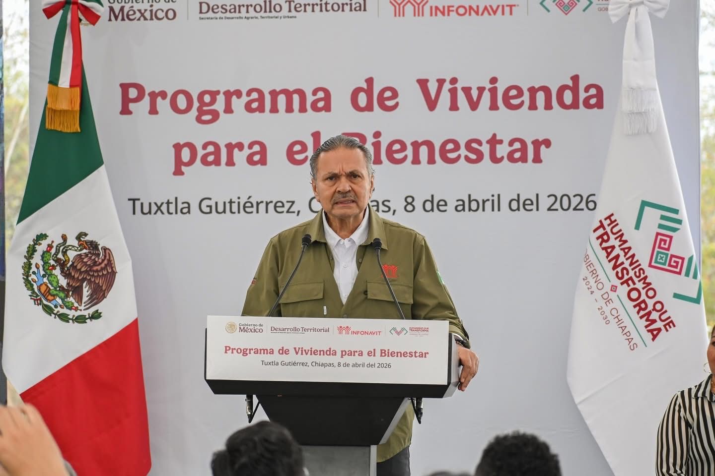 Al acompañar a la secretaria de Desarrollo Agrario, Territorial y Urbano (Sedatu), Edna Elena Vega Rangel, quien asistió como representante de la presidenta Claudia Sheinbaum, y al director general del Instituto del Fondo Nacional de Vivienda para los Trabajadores (Infonavit), Octavio Romero Oropeza, el mandatario aseguró que se trabaja de manera coordinada con la Federación para cumplir la meta de otorgar 20 mil viviendas en 2026. “Desde Chiapas contribuiremos a la construcción de un mejor México”, apuntó.