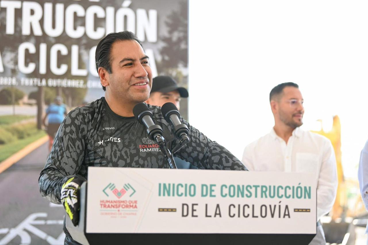 El gobernador Eduardo Ramírez Aguilar dio inicio a la construcción de la ciclovía más grande del sur de México, la cual conectará a los municipios de Tuxtla Gutiérrez y Suchiapa a través de un circuito de 17 kilómetros. Resaltó que este proyecto vial, con una inversión superior a 106 millones de pesos, contribuirá a mejorar la movilidad al ofrecer una alternativa de transporte eficiente, saludable y respetuosa con el medio ambiente.
