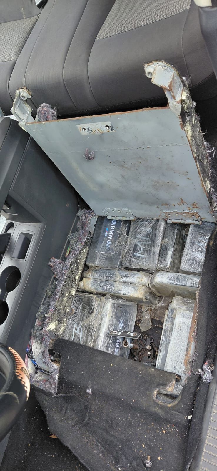Posteriormente, el vehículo fue puesto a disposición de la Fiscalía General de la República, donde, tras una revisión minuciosa, se detectaron compartimentos ocultos en los que se localizaron un total de 202 paquetes con sustancia con características similares a la cocaína, con un valor estimado de aproximadamente 1.5 millones de dólares.