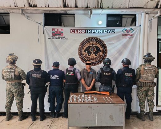 En esta acción coordinada participaron la Secretaría de Seguridad Pública y Protección Ciudadana Municipal, la Fuerza de Reacción Inmediata Pakal (FRIP), la Secretaría de Seguridad del Pueblo, la Agencia de Investigación e Inteligencia Ministerial, la Guardia Nacional y corporaciones estatales y federales, quienes aseguraron diversas dosis de presuntas sustancias ilícitas, un arma de fuego, cartuchos útiles y una motocicleta.