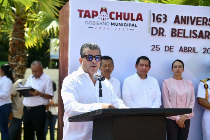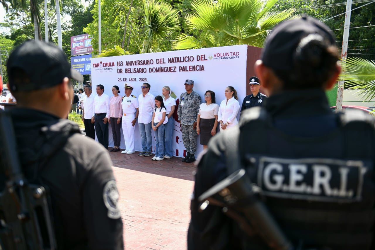 Tapachula, Chiapas; 25 de abril de 2026.– En el marco del 163 aniversario del natalicio del doctor Belisario Domínguez, autoridades civiles y militares participaron en una ceremonia conmemorativa para honrar la memoria de uno de los grandes referentes de la libertad y la democracia en México.