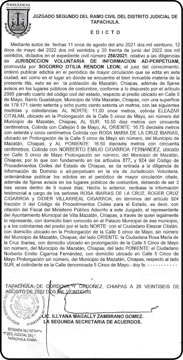 El Poder Judicial del Estado de Chiapas, en cumplimiento con el compromiso del acceso a la justicia y la protección integral de los derechos...