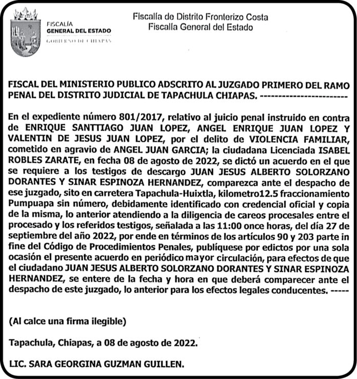 El Poder Judicial del Estado de Chiapas, en cumplimiento con el compromiso del acceso a la justicia y la protección integral de los derechos...