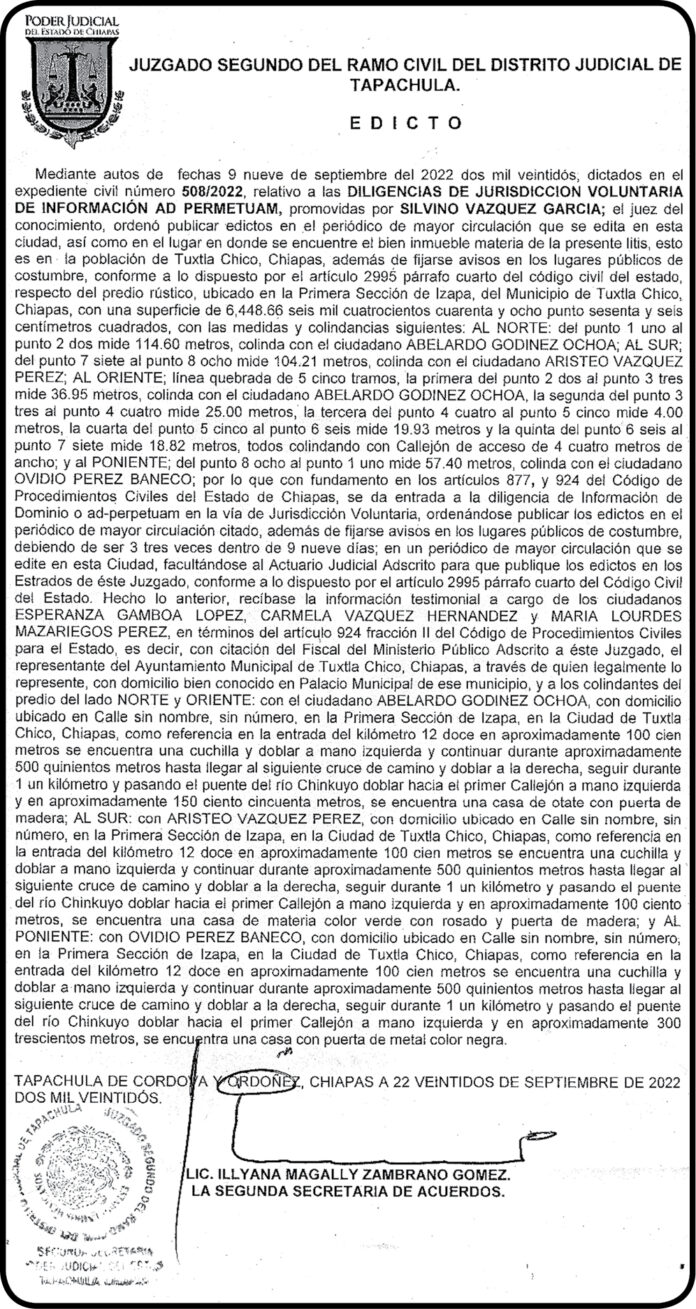 InicioAviso EficazEdictosEdicto 508-2022 Edictos Edicto 508-2022 4 octubre, 2022 0 1469 Cuota FacebookTwitterPinterestWhatsAppEmail Edicto 508-2022 Cuota FacebookTwitterPinterestWhatsAppEmail Artículo anteriorAviso Dina Cruz OrdoñezArtículo siguienteEdicto 593-2010 RELATED ARTICLES Edictos Edicto 556-2023 11 octubre, 2023 Edictos Aviso Luvia Perez Galvez 11 octubre, 2023 Edictos Edicto 1174-2021 10 octubre, 2023 EL ORBE AL MOMENTO: Conferencia de prensa matutina. Jueves 18 de diciembre 2025 | Presidenta Claudia Sheinbaum Pardo Al Instante staff - 18 diciembre, 2025 0 Te invitamos a seguir la transmisión en vivo de la conferencia matutina: #MañaneradelPueblo, encabezada por la Dra. Claudia Sheinbaum Pardo, Presidenta Constitucional de los... Leer más ¡Gran Final hoy el Campo Córdova Uno! Al Instante staff - 18 diciembre, 2025 0 Tapachula, Chiapas.-Hoy en punto de las 15:30 horas, se jugará la gran final del Torneo Decembrino 2025, en el campo Córdova Uno, en la... Leer más María Ruth De la Cruz, Celebra su 61 Aniversario con Carrera Deportiva Al Instante staff - 18 diciembre, 2025 0 La maestra y atleta María Ruth De la Cruz Navarro, celebró la llegada de su 61 aniversario de una manera especial, llena de entusiasmo,... Leer más Cargar más MAS Popular México se Mantiene Entre los Mayores Exportadores de Alimentos 18 diciembre, 2025 Mexicanos Gastarán 4 mil Pesos en Cena Navideña Este 2025 18 diciembre, 2025 Conferencia de prensa matutina. Jueves 18 de diciembre 2025 | Presidenta Claudia Sheinbaum Pardo 18 diciembre, 2025 Denuncian Altas Tarifas de Taxistas en Tapachula; Usuarios Pagan de 100 Pesos Para Arriba por Corrida 18 diciembre, 2025 Cargar más