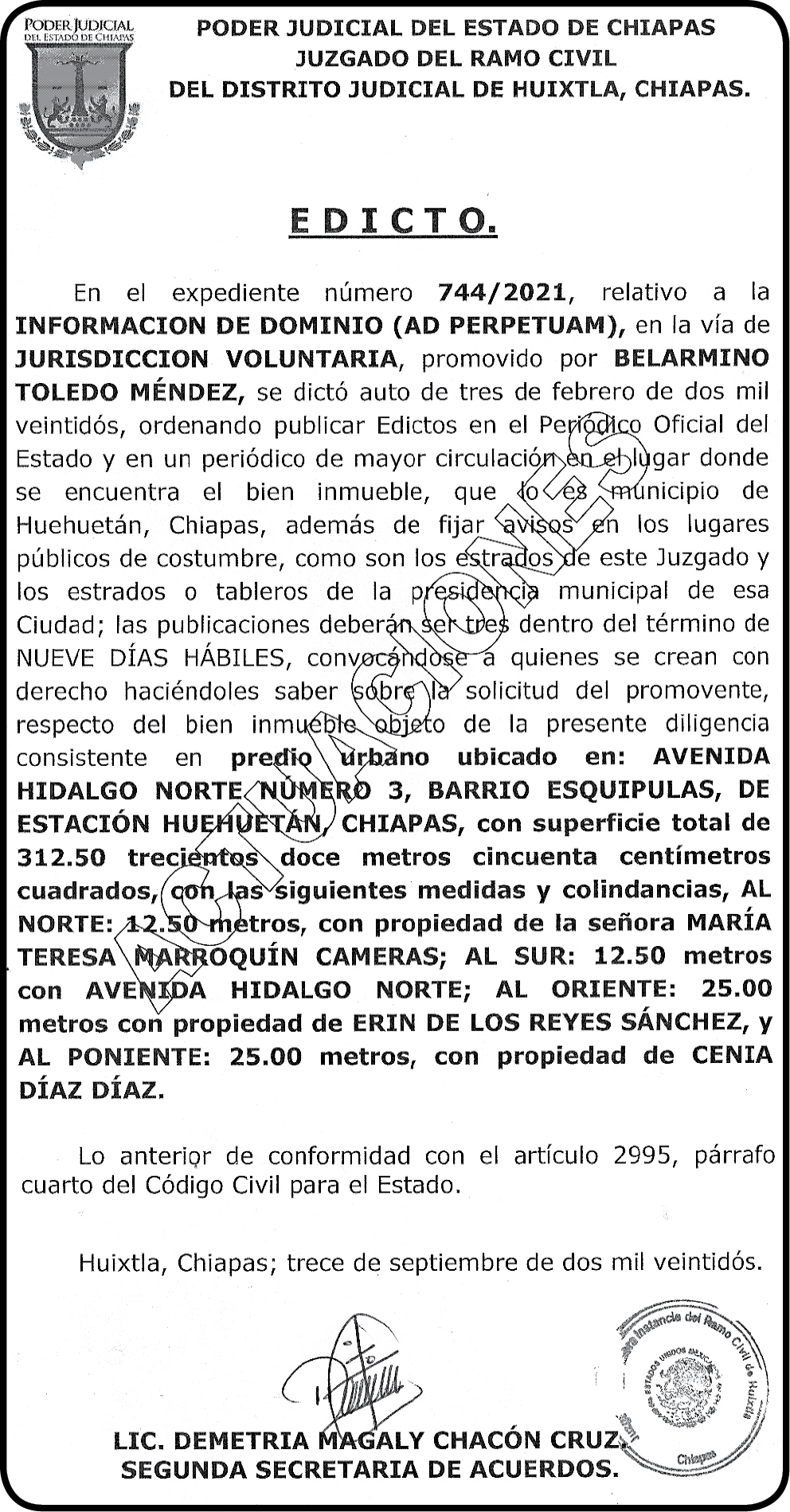 Edicto 744-2021