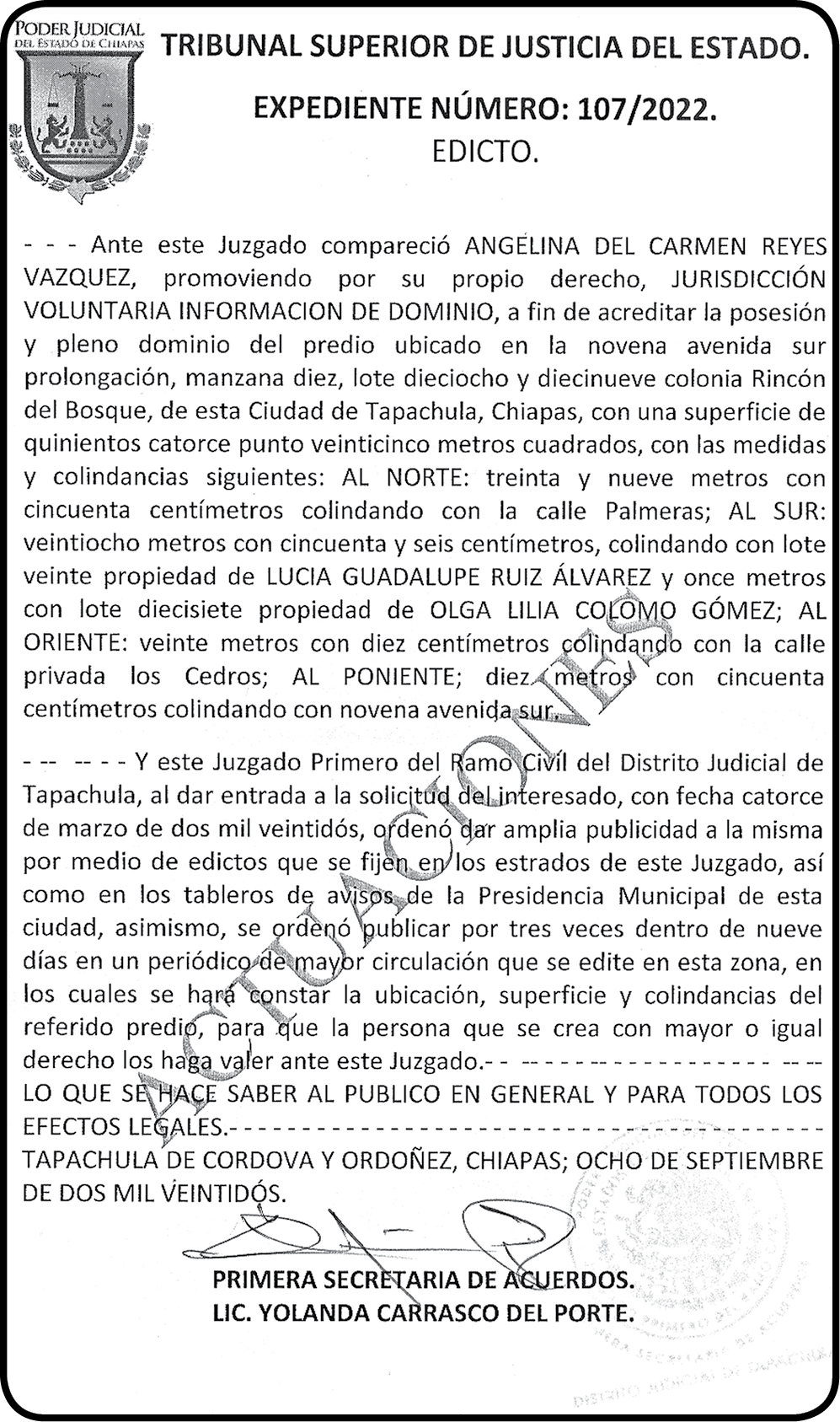 El Poder Judicial del Estado de Chiapas, en cumplimiento con el compromiso del acceso a la justicia y la protección integral de los derechos...
