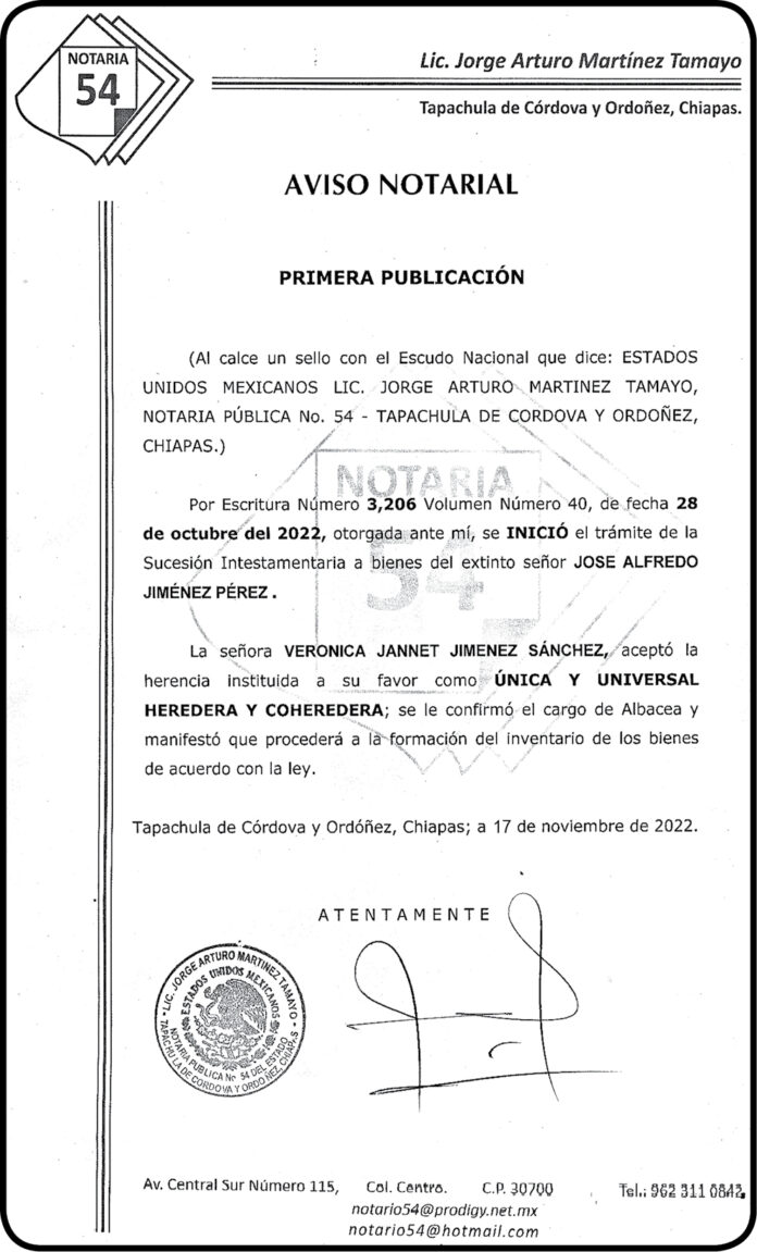 Aviso Jose Alfredo Jimenez