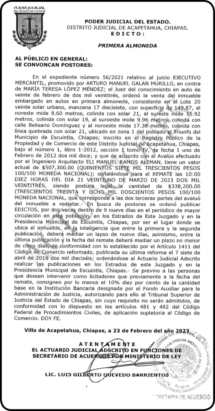 El Poder Judicial del Estado de Chiapas, a través de un Tribunal de Enjuiciamiento, dictó sentencia condenatoria en contra de una persona del sexo...