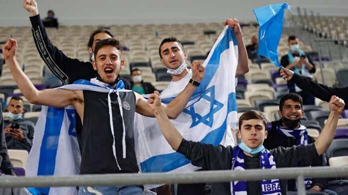En los videos que rápidamente se hicieron virales, se puede ver a decenas de personas con rasgos árabes con playeras y banderas de países como Argentina, España e Inglaterra.