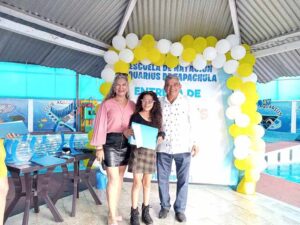 Tapachula, Chiapas; 14 de Febrero 2023.- Alumnos de la escuela de Natación Club Aquarius fueron galardonados con los premios Googles de Oro, entregados por el profesor Juan Manuel del Pino, director de la escuela de nado.