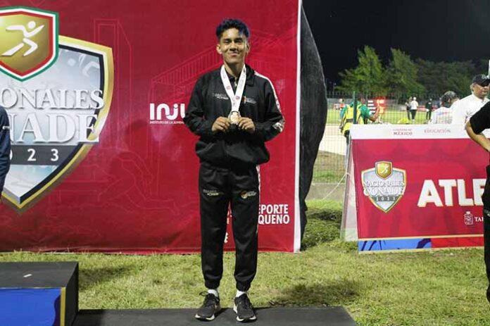 El pertegista Eduardo Alonso Cameras Díaz, subió al pódium logrando adjudicarse la medalla de Bronce al establecer un salto de 4 metros en la disciplina de Salto con Garrocha, dentro de los Nacionales Conade 2023, justa que se está realizando sobre la pista de atletismo “Olimpia 21” en Villahermosa, Tabasco, sumando así nuestro Estado la medalla número 73.