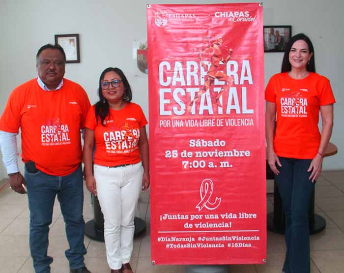 El Instituto del Deporte del Estado de Chiapas y la Secretaría de Igualdad de Género (Seigen), suman esfuerzos para la realización de la segunda edición de la carrera estatal “Por una Vida Libre de Violencia”, a realizarse el próximo 25 de noviembre en el marco del Día Internacional de la Eliminación de la Violencia contra las Mujeres y Niñas.