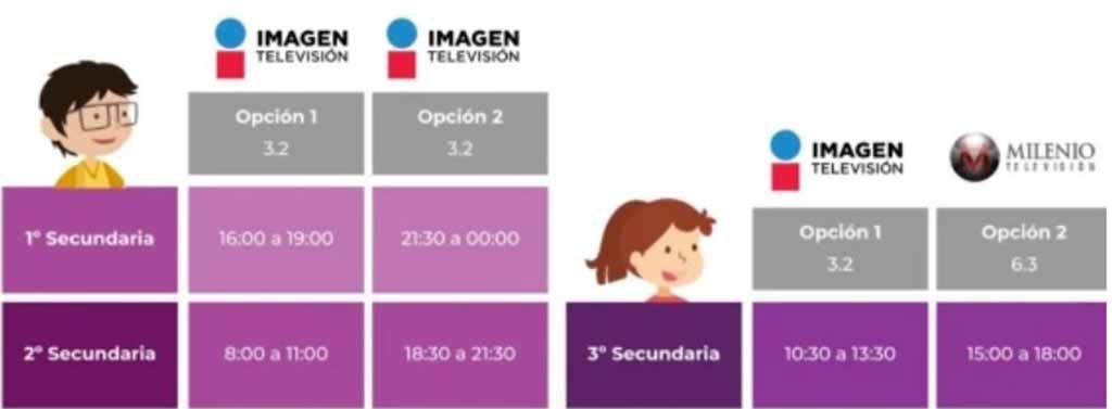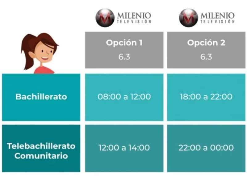 Por su parte, Educación Media Superior se transmitirá en los canales 14.2 y 6.3 canales de Ingenio Tv y Milenio. Barras de programación educación básica y bachillerato