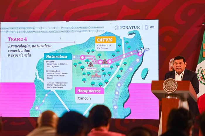Javier May reiteró que el Tren Maya será inaugurado en diciembre de este año para iniciar «una nueva etapa para el turismo en el país, moderno, sustentable, seguro, con integración de las comunidades y de los pueblos, y con pleno acceso a la grandeza del sureste mexicano». Sun