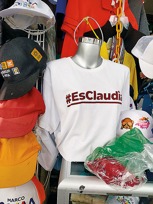 Los volantes que también se entregan en estaciones del Metro y paraderos de Claudia Sheinbaum, en papel bond a dos tintas, media carta, con la imagen de la exjefa de Gobierno y la clásica frase que aparece en espectaculares, microbuses y autobuses capitalinos «En la encuesta Claudia es la respuesta», tienen un costo por millar de 300 a 400 pesos. En los establecimientos dedicados al marketing político y la impresión de utilitarios para campañas ya han vendido a varios clientes en todo el país estos artículos y exhiben playeras blancas con la frase «# Es Claudia» en letras guindas.