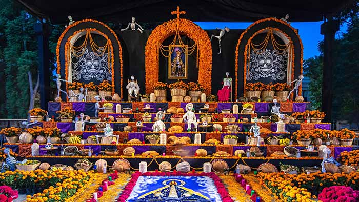 En el marco de la conmemoración, se pueden ver las ofrendas y altares decorados con flores de cempasúchil, papel picado, calaveritas de azúcar, pan de muerto o diferentes platillos.