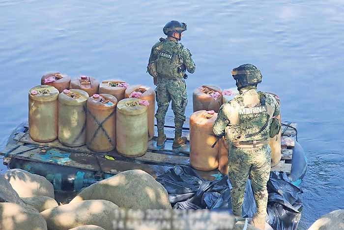 El jueves 12 de febrero, los marinos localizaron a la orilla del río Suchiate, 15 bidones que habían llegado a México procedentes de Guatemala, con un total de 76 litros de combustible cada uno, con un total de mil 140 litros.