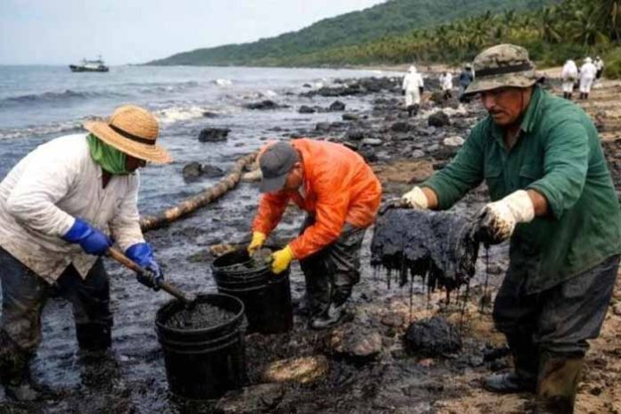 En sus canales oficiales, compartió un video de un poblador del Ejido el Tortuguero de nombre Ramiro García, quien expresa que en Playa Las Palmitas hubo «un pequeño derrame» que no causó tanta afectación.