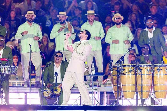 El artista concluyó su paso por uno de los escenarios más importante del continente americano con un poderoso gesto: un desfile de banderas de países de toda América, incluyendo a El Salvador, Chile, Jamaica, Argentina, Uruguay, Paraguay, Colombia, Honduras, Estados Unidos, Canadá, México y Puerto Rico.