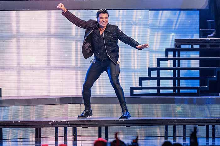 A las 20:37 horas, Chayanne apareció desde debajo del escenario, emergiendo en un elevador al ritmo de «Bailemos otra vez». Vestido completamente de negro, con transparencias y brillos, marcó desde el inicio el tono de la noche con sus ya conocidas coreografía precisa, energía intacta y una relación directa con el público.
