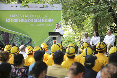 Tuxtla Gutiérrez; 6 de Octubre.- Con el propósito de continuar con el trabajo colectivo que priorice la preservación de las riquezas naturales y ecosistemas de Chiapas, el gobernador Manuel Velasco Coello encabezó la presentación de la Estrategia Estatal de Reducción de Emisiones por Deforestación y Degradación Forestal (REED+).