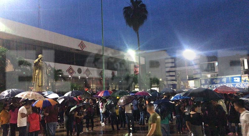 La marcha comenzó alrededor de las 18:00 horas, justo cuando en la región se hacía presente una torrencial lluvia, aunque ni eso impidió la manifestación.