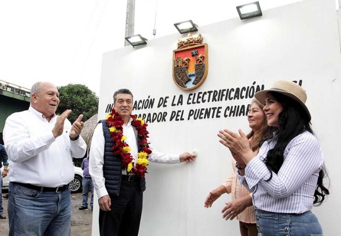 Al inaugurar la red de energía eléctrica en el parador del Puente Chiapas, el gobernador Rutilio Escandón Cadenas destacó que con esta obra se cumple el compromiso que el presidente Andrés Manuel López Obrador, hizo de manera directa con habitantes y prestadores de servicios de esta región quienes tuvieron que esperar mucho tiempo para tener electricidad, pese a estar tan cerca la presa Nezahualcóyotl, conocida como Malpaso, construida hace 61 años: “porque la palabra de un hombre honesto vale mucho”.