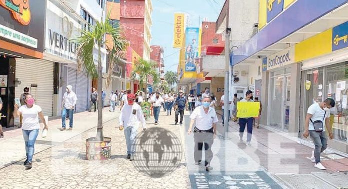 Tapachula, Chiapas; 20 de mayo. – Un grupo de personas que dijeron ser empresarios del centro de la ciudad y sus trabajadores, se manifestaron este miércoles para exigir la reapertura de las áreas públicas que fueron restringidas para evitar la propagación del Covid-19.