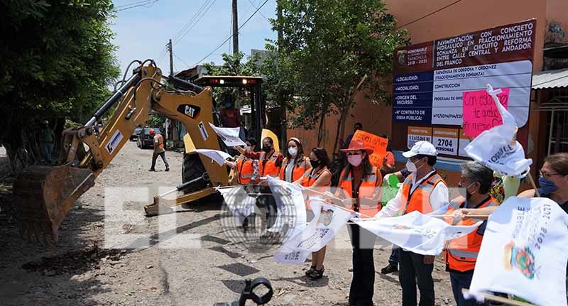 La propia Presidente, acompañada de Regidores y de vecinos de «Bonanza», dieron el banderazo de inicio para los trabajos de pavimentación con concreto hidráulico del Circuito Reforma, entre la Calle Central y Andador Del Franco.