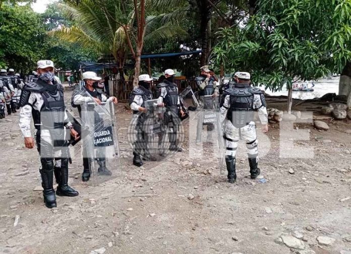 Poco antes del mediodía, un contingente de unos 300 efectivos de la Guardia Nacional y del Ejército Mexicano portando escudos antimotines, toletes y chalecos protectores arribaron a la orilla del río Suchiate, que divide a México con Guatemala, y en grupos de ocho acompañados por agentes migratorios, se instalaron en los pasos informales a lo largo de un kilómetro.