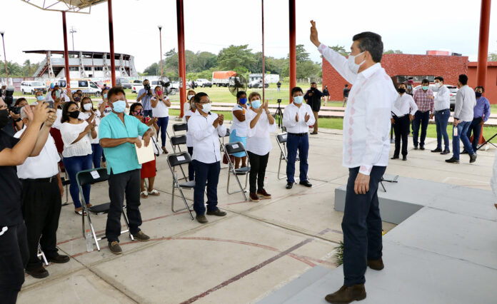 Durante esta gira por Catazajá, el jefe del Ejecutivo Estatal reiteró el llamado a evitar reuniones masivas por el Día del Amor y la Amistad, y continuar con las medidas de prevención ante el COVID-19, pues, aunque la entidad pasará a verde en el Semáforo Epidemiológico, el riesgo de contagio permanece.
