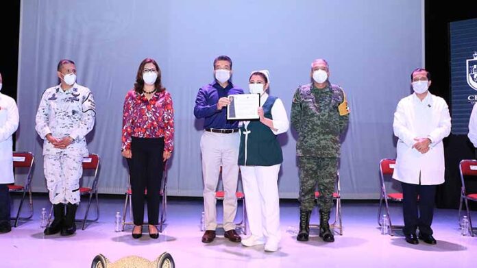 En este marco, Escandón Cadenas resaltó la labor solidaria y comprometida del personal del Sector Salud y de Educación, del Ejército Mexicano, Marina, Guardia Nacional, Programas Integrales de Desarrollo, Servidores de la Nación, Protección Civil, corporaciones de seguridad pública, entre otras instancias públicas y privadas que participan en esta estrategia a favor de la salud y bienestar de las chiapanecas y los chiapanecos.