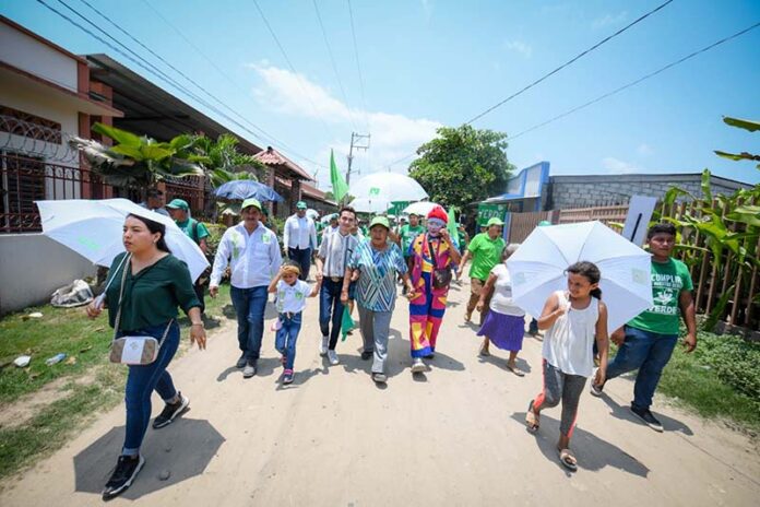 La candidata a la Presidencia Municipal de Suchiate, por el Partido Verde Ecologista de México, Matilde Espinoza Toledo, recorrió el ejido La Libertad casa por casa y se reunió con los habitantes de dicho lugar, a quienes escuchó sus planteamientos y propuso soluciones contundentes después de ganar la elección del próximo 6 de Junio.
