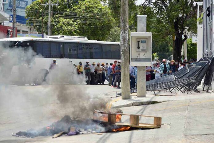 Tuxtla Gutiérrez, Chiapas; 27 de Mayo.- Estudiantes, padres de familia y maestros adheridos a la Coordinadora Nacional de Trabajadores de la Educación (CNTE) bloquearon ayer la sede del Instituto de Elecciones y Participación Ciudadana (IEPC), como parte de la jornada de protestas en Chiapas para exigir la libertad incondicional de 19 alumnos de la Escuela Normal Rural Mactumactzá sujetos a proceso en el penal El Amate, municipio de Cintalapa.