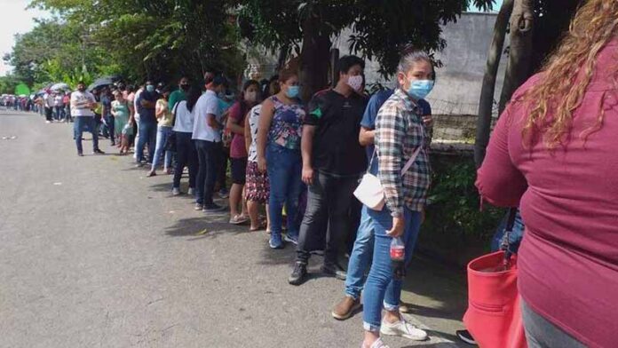 Tapachula, Chiapas; 23 de Julio del 2021.- Este viernes fue histórico en el municipio luego de que miles de jóvenes y personas de 30 años y más, abarrotaron literalmente los centros de vacunación para recibir la dosis gratuita en contra del mortal virus del Covid-19.