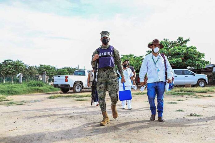 Llevar la vacunación a El Arenal no fue fácil, la brigada conformada por enfermeras, miembros de la Secretaría de la Defensa Nacional (Sedena), Secretaría de Marina (Semar), Secretaría de Bienestar, IMSS ordinario e IMSS Bienestar y el coordinador de la brigada Correcaminos, Alberto Zamora partió con el biológico Sinovac desde el Hospital General de Sub Zona con medicina familia Nº 15 en Tonalá hasta Punta Flor, en donde tomaron una lancha para el traslado a la comunidad.