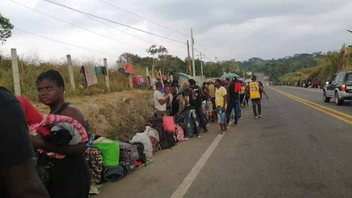 Los extranjeros permanecen a un costado de esa carretera ubicada al sur de la ciudad, en la que cada momento que pasa llegan más y ya son varios kilómetros de personas que no se separan de ahí, por temor de perder su espacio en el momento de que quizá es manden los autobuses.