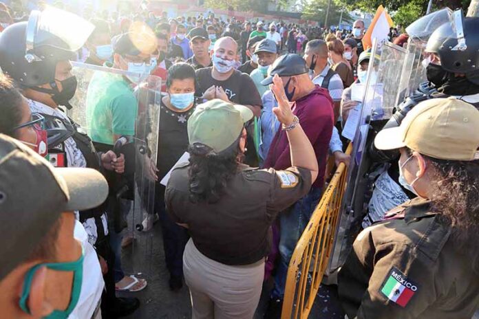 Una empleada del INM que acudió a hablar con los extranjeros comentó que se han tenido algunas demoras. Los migrantes piden visas humanitarias, «pero les trato de explicar que existen varios procedimientos», expuso.