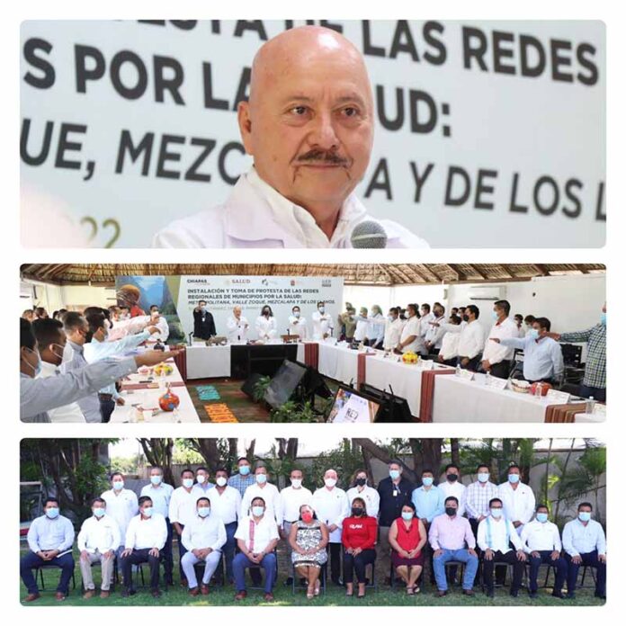 Tuxtla Gutiérrez, Chiapas; 23 de Enero de 2022.- Al tomar protesta a integrantes de las Redes de Municipios por la Salud de las regiones Metropolitana, Valles Zoque, Mezcalapa y De los Llanos, el secretario de Salud de Chiapas, doctor Pepe Cruz, convocó a las y los Presidentes Municipales a sumar esfuerzos para que en la etapa de consolidación del Gobierno que encabeza Rutilio Escandón Cadenas, la entidad siga despuntando en el mejoramiento de indicadores que inciden en el bienestar de la población.