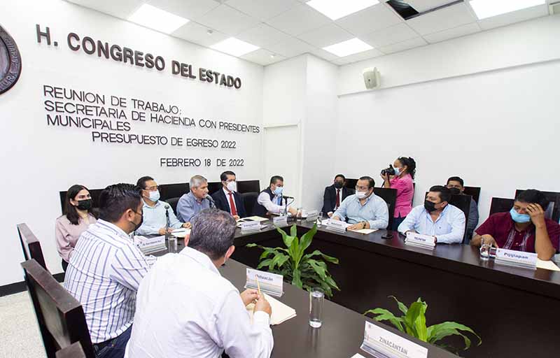 Tuxtla Gutiérrez, Chiapas; 20 de Febrero de 2022.- El Congreso del Estado, a través de la Comisión de Hacienda que preside el diputado Felipe Granda Pastrana, sostuvo una reunión con Presidentes Municipales, autoridades de la Comisión Federal de Electricidad (CFE) y de la Secretaría de Hacienda del Estado, para gestionar acuerdos e implementar esquemas que permitan solucionar la problemática de adeudos con la paraestatal.