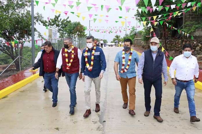 En otro momento, el mandatario puso en marcha la pavimentación integral con concreto hidráulico de calles en la localidad La Flor de este municipio, donde destacó que de esta forma se brinda justicia social a las y los habitantes de dicha comunidad que por mucho tiempo transitaban en caminos lodosos e inseguros; por ello, les pidió cuidar la vialidad de más de un kilómetro, en la que se invirtió más de 9.5 millones de Pesos y responde a una necesidad apremiante de facilitar la circulación vehicular, con alumbrado público, drenaje pluvial, banquetas y guarniciones, a fin de no poner en riesgo a los peatones.