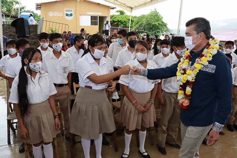 “Me da gusto constatar la construcción de este espacio que cuenta con aulas y mobiliario digno, donde se podrá practicar el proceso de enseñanza–aprendizaje de manera adecuada, luego de que por años estuvo en condiciones difíciles e impropias para la impartición de la educación; sin embargo, eso no detuvo a las y los docentes al ejercer su trabajo académico y al alumnado en la adquisición de nuevos conocimientos”, sostuvo al señalar que esta obra también se deriva del trabajo eficiente de las madres y los padres de familia, a través del Programa “La Escuela es Nuestra”.