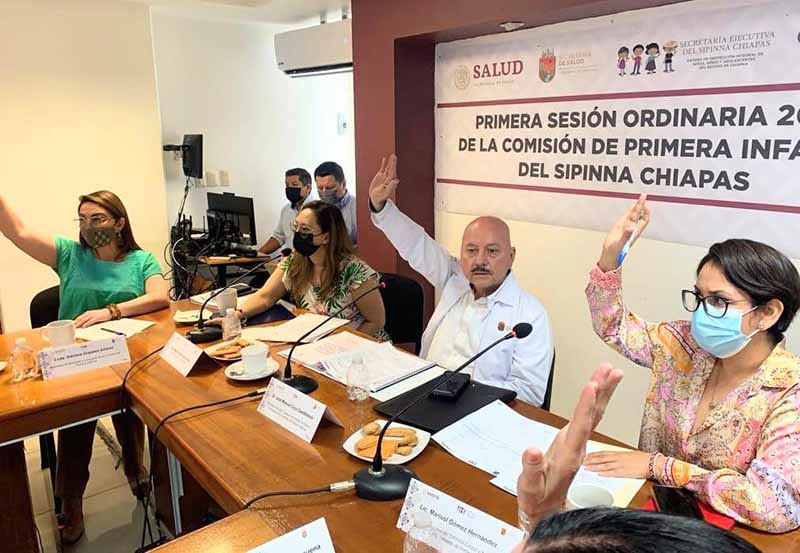 En la primera sesión ordinaria 2022 de la Comisión de Primera Infancia del Sistema de Protección Integral de Niñas, Niños y Adolescentes (Sipinna) de Chiapas, el secretario de Salud en el estado y coordinador de dicha Comisión, doctor Pepe Cruz, resaltó que existe un importante avance en los indicadores correspondientes a la evaluación del desarrollo infantil, la alimentación exclusiva con el seno materno en los primeros seis meses de vida, disminuir la desnutrición y obesidad, detección y atención a niñas y niños maltratados, prevención de abuso sexual, prevención de enfermedades a través del Programa de Vacunación, atención a niñez con discapacidad física y derecho a la identidad al nacer.
