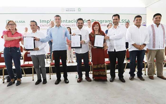 En la Estación del Tren Maya de Palenque, Chiapas, durante una histórica convocatoria que reunió a tres gobernadores, autoridades federales, estatales, municipales, de cámaras empresariales y del sector turístico, se firmó el Acuerdo de la Implementación del programa ELSSA, por parte de la secretaria de Economía, Tatiana Clouthier; el presidente de la Concanaco-Servytur, Héctor Tejada Shaar; los gobernadores de Campeche y Quintana Roo, Layda Sansores y Carlos Joaquín González; el director general del Fondo Nacional de Fomento al Turismo (Fonatur), Javier May Rodríguez. Como testigos de honor suscribieron el director general del IMSS, Zoé Robledo; y el gobernador de Chiapas, Rutilio Escandón Cadenas.