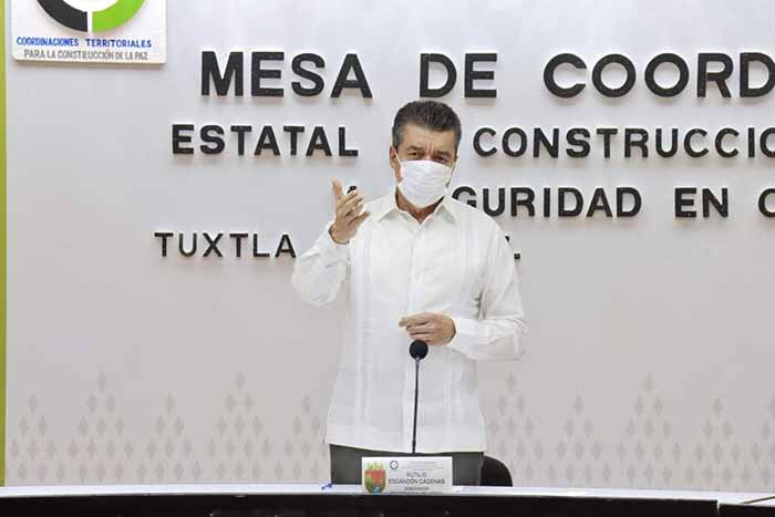 Tuxtla Gutiérrez, Chiapas.- En el marco de la Mesa de Seguridad Estatal que todos los días encabeza en Palacio de Gobierno, el gobernador Rutilio Escandón Cadenas destacó que, en las últimas 24 horas, correspondientes al día sábado 27 de Agosto, Chiapas registró saldo blanco en delitos de alto impacto, derivado del trabajo disuasivo que realizan las fuerzas de seguridad y gracias al responsable comportamiento de la población.