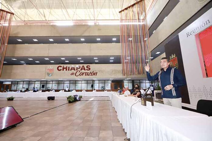 En la reunión con el Gabinete Legal y Ampliado, el gobernador Rutilio Escandón Cadenas reiteró el exhorto a las y los titulares de las distintas dependencias de la administración pública estatal a desempeñarse con dignidad, honestidad y vocación de servicio, para sacar adelante los proyectos y programas a favor del pueblo chiapaneco.