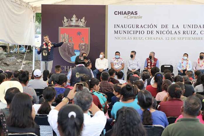 Durante la inauguración de la rehabilitación y ampliación de la Unidad Deportiva del municipio de Nicolás Ruiz, el gobernador Rutilio Escandón Cadenas sostuvo que su gobierno ha asumido el compromiso de invertir en acciones de construcción y mejoramiento integral de la infraestructura deportiva de la entidad, porque además de cumplir con un derecho humano, se contribuye a la salud y al bienestar de la población, y se aleja a la niñez y juventud de los vicios y la violencia.